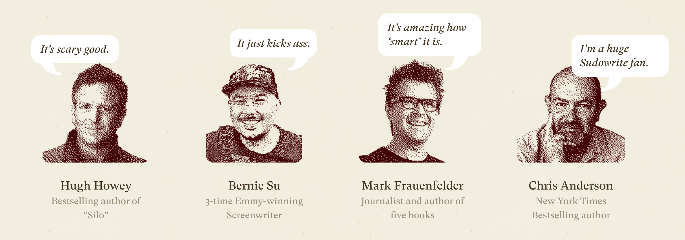 “Sudowrite saved me hours on my short film script — the dialogue suggestions felt real and in character.” — Reddit