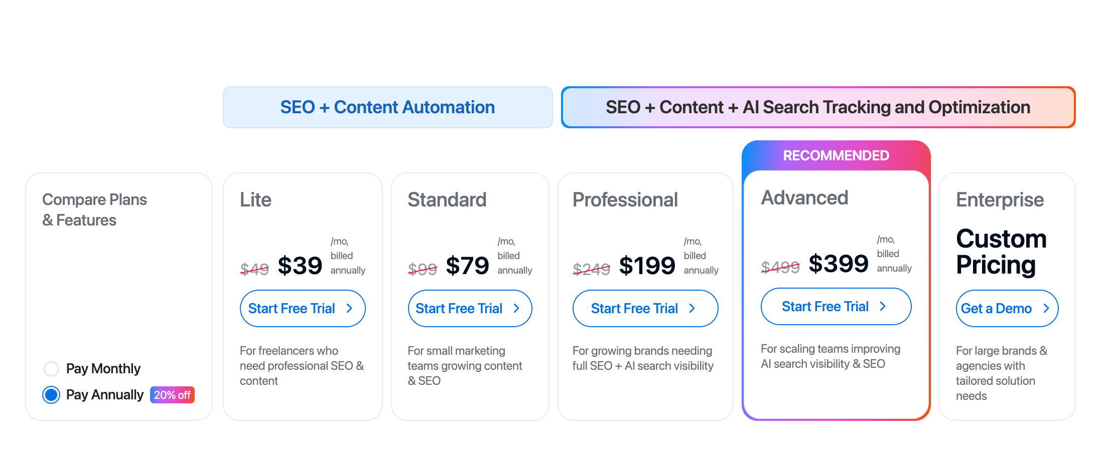 Free Trial: Limited access to structured generation and content recommendations.